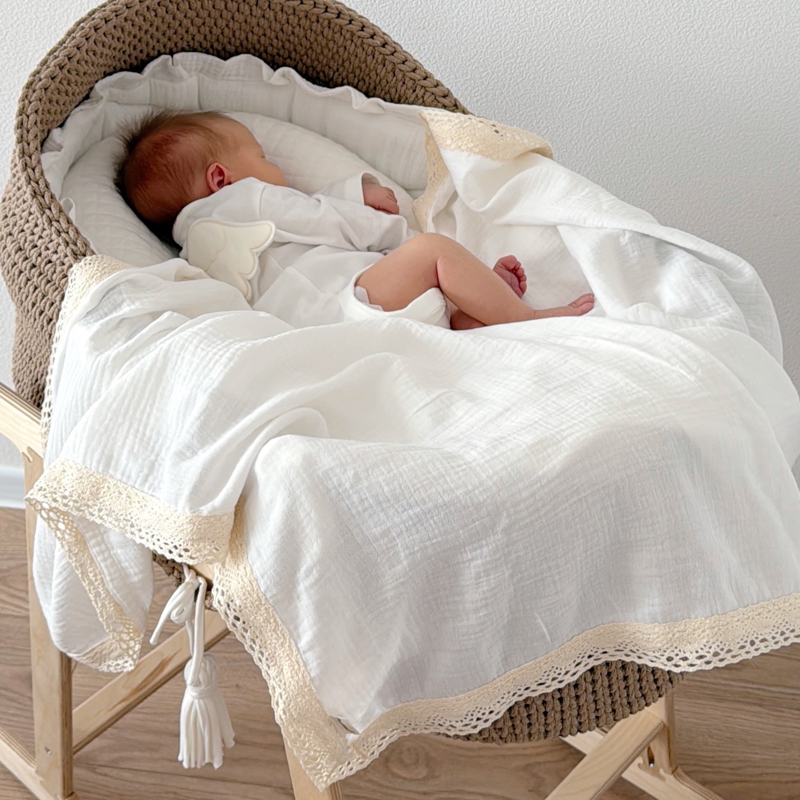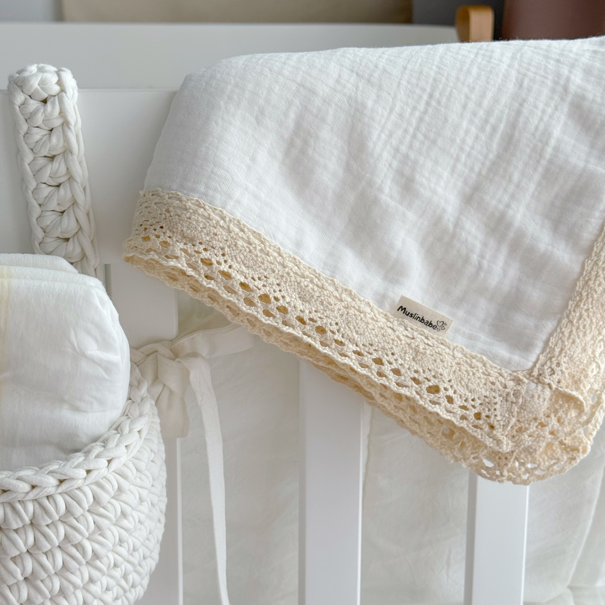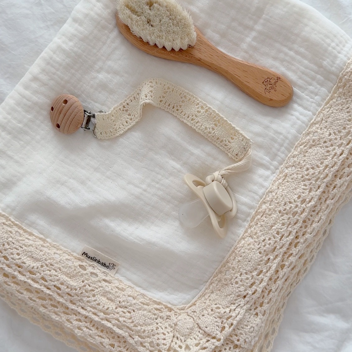 Пеленка муслин с кружевом "Молоко"